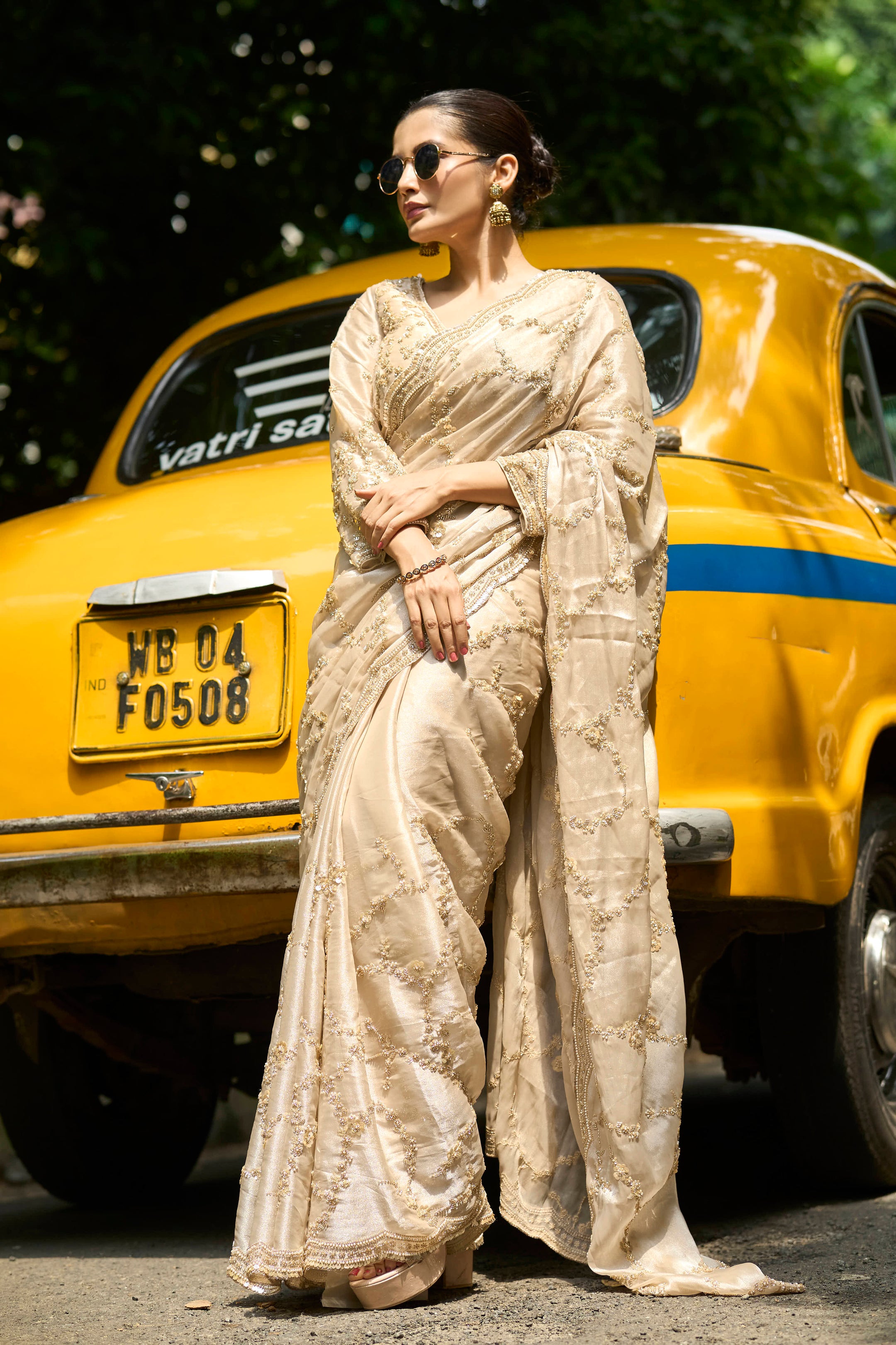 Embrace elegance with the Chiku Glam Glow saree, designed to bring a subtle shimmer to your special moments. Its gentle chiku shade radiates warmth, while a soft glow enhances your natural charm. Perfect for occasions where you want to shine gracefully without overpowering, this saree offers comfort alongside its delicate sheen, making every step you take a glowing statement of style.