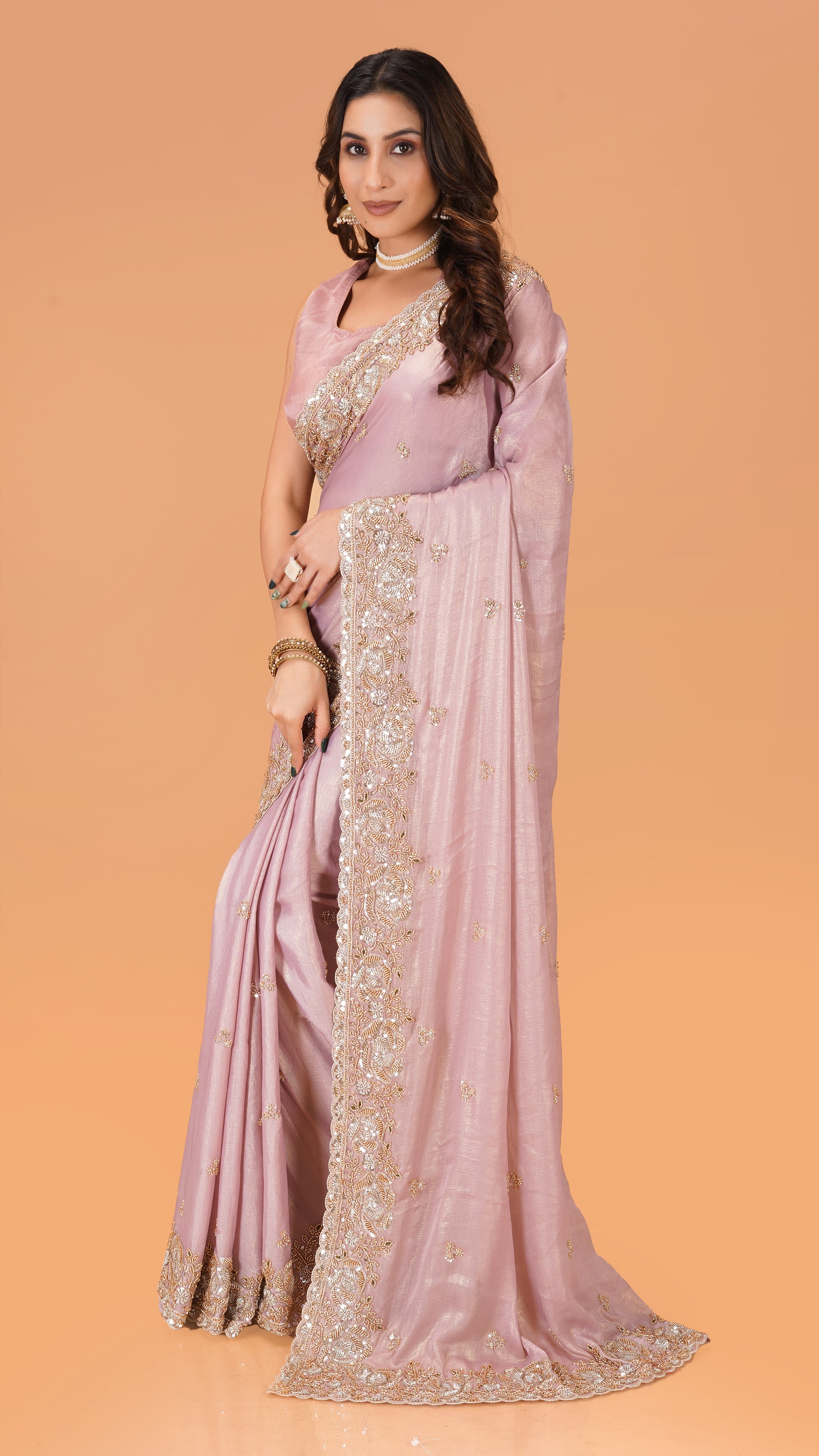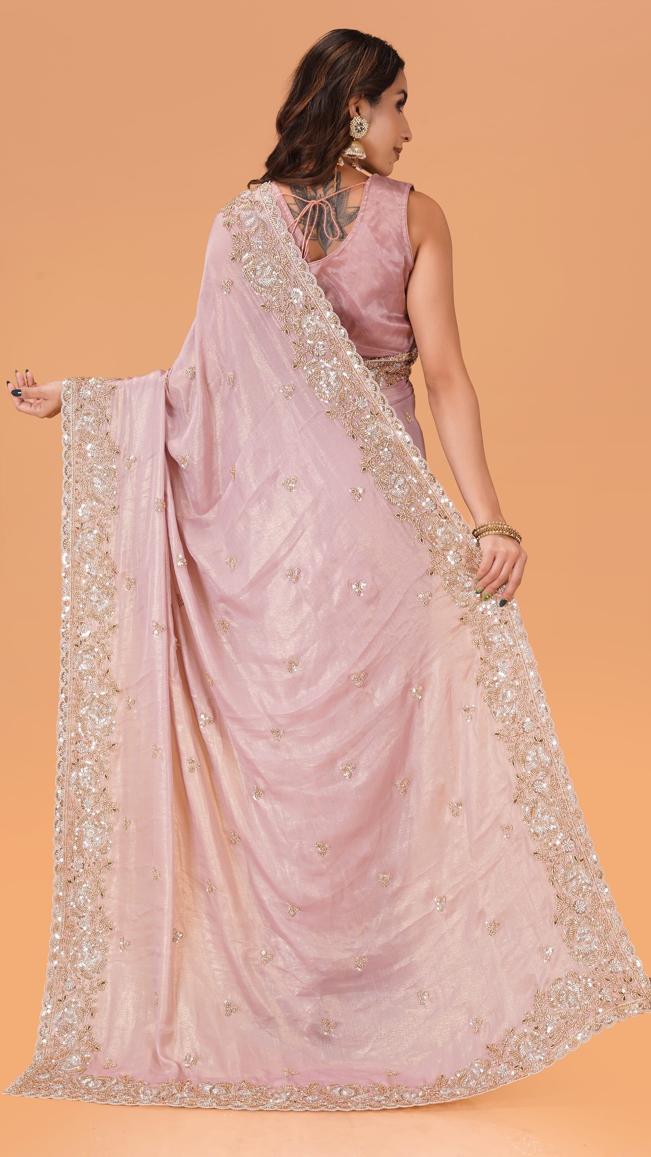 Glamorous Pink Chiffon Saree with Foil, Beads & Sequins